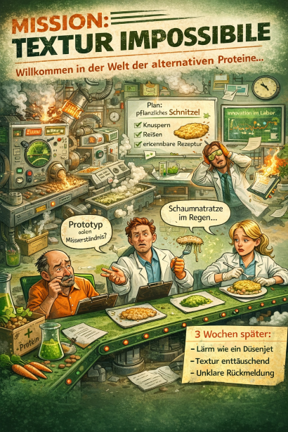 „Was haben ein Gummiball, ein Kichererbsenpüree und ein Burnout gemeinsam? Richtig – sie alle können in der Produktentwicklung alternativer Proteine auftreten, wenn man sich auf Bauchgefühl statt Daten verlässt.“